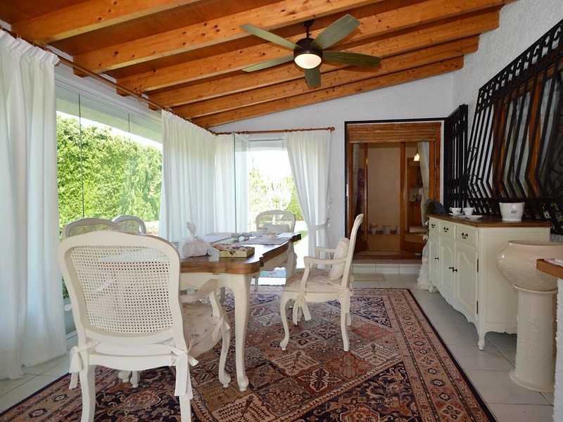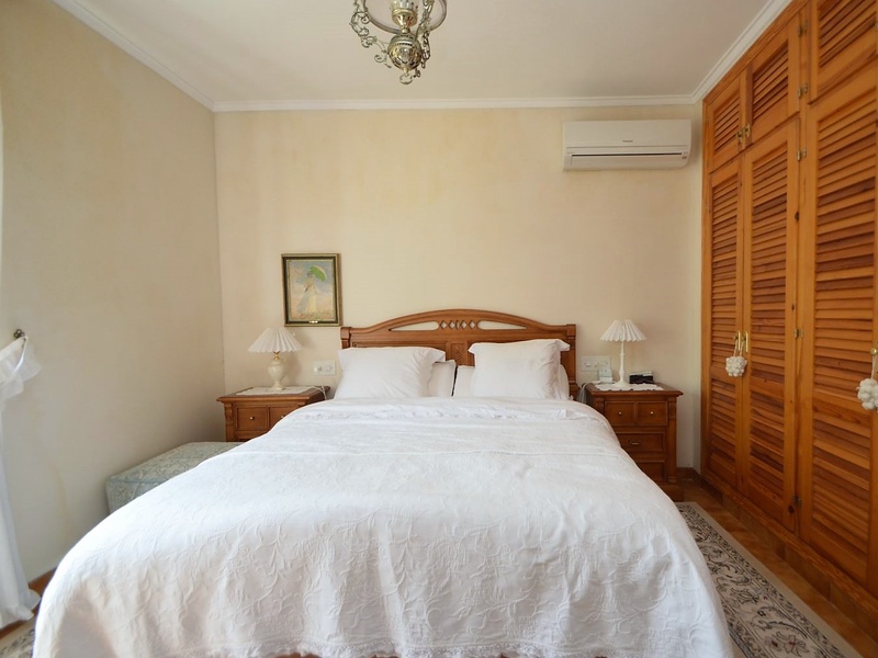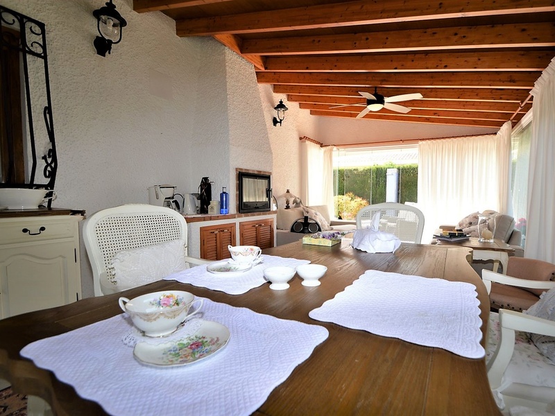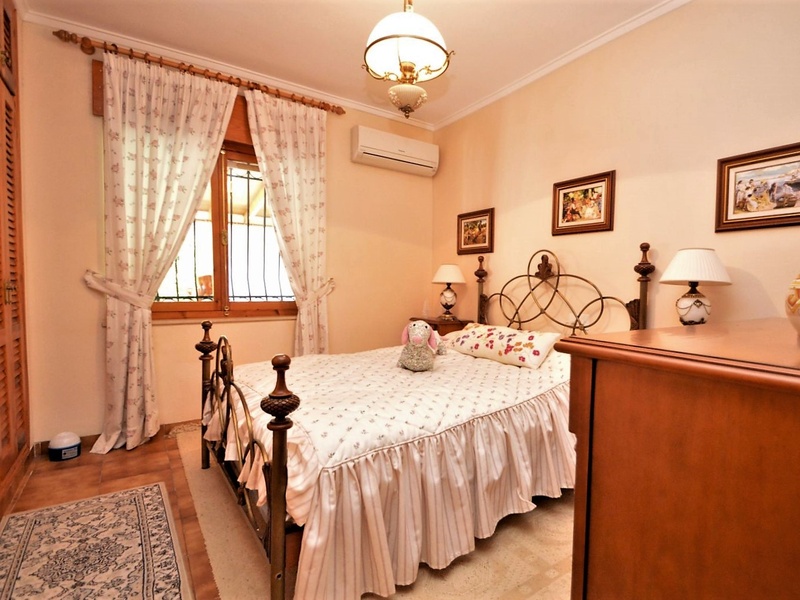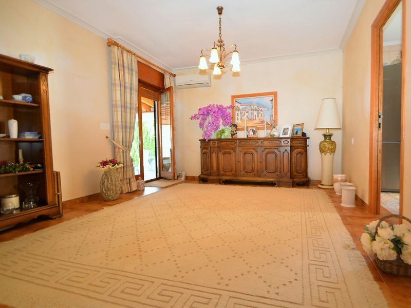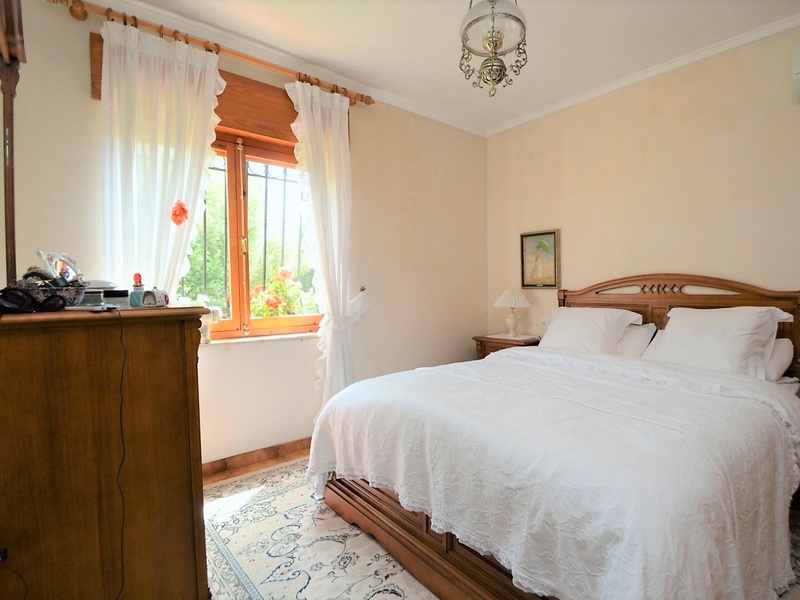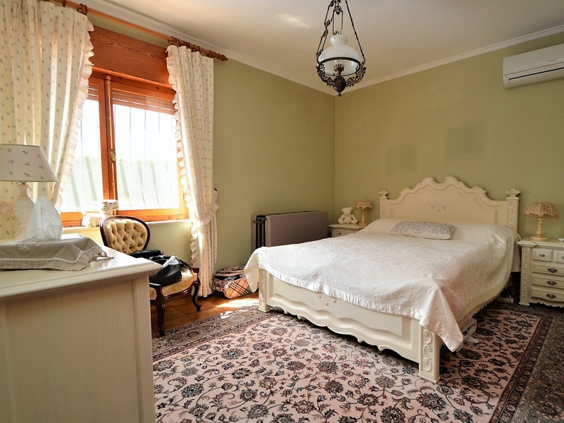 Detached villa with 3 bedrooms, a large living room, a separate kitchen, a spacious glazed terrace, an utility room and a garage. The villa is fully furnished and equipped with all appliances, with heating, air conditioning, fireplace, telephone land line, internet, alarm system and others. The house is located on a land with a surface area of 853 square meters with a heated pool and vegetation of all kinds: trees, palm trees and an olive tree over 500 years old.
