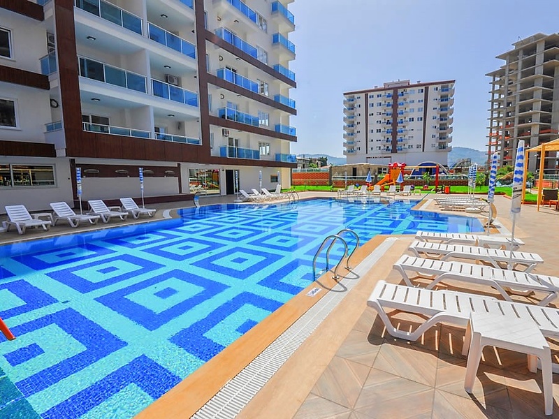 Агентство недвижимости Stay Property продает двухкомнатную квартиру в новом жилом комплексе в районе Махмутлар курортного города Алании по выгодной цене. Расстояние от комплексе до пляжа 550 метров. Квартира расположена на пятом этаже 12 этажного дома. Площадь квартиры 65 кв.м. В квартире 1 спальня и 1 гостиная с американской кухней. Окна смотрят во внутренний двор с бассейном. В комплексе есть открытый, крытый и детский бассейны с водными горками, игровая комната, настольный теннис, бильярд, сауна, парная, тренажерный зал, беседки, сад, зона для барбекю, детская площадка, консьерж, лифт, электрогенератор, парковка и беспроводной интернет.