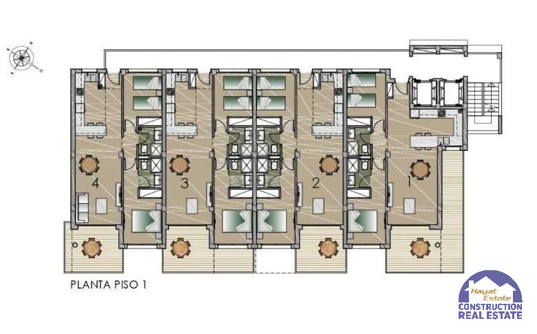 На 6 и 7 этажах расположены апартаменты типа дуплекс с 2 спальнями (одна из них с гардеробной), двумя ванными комнатами и большими террасами