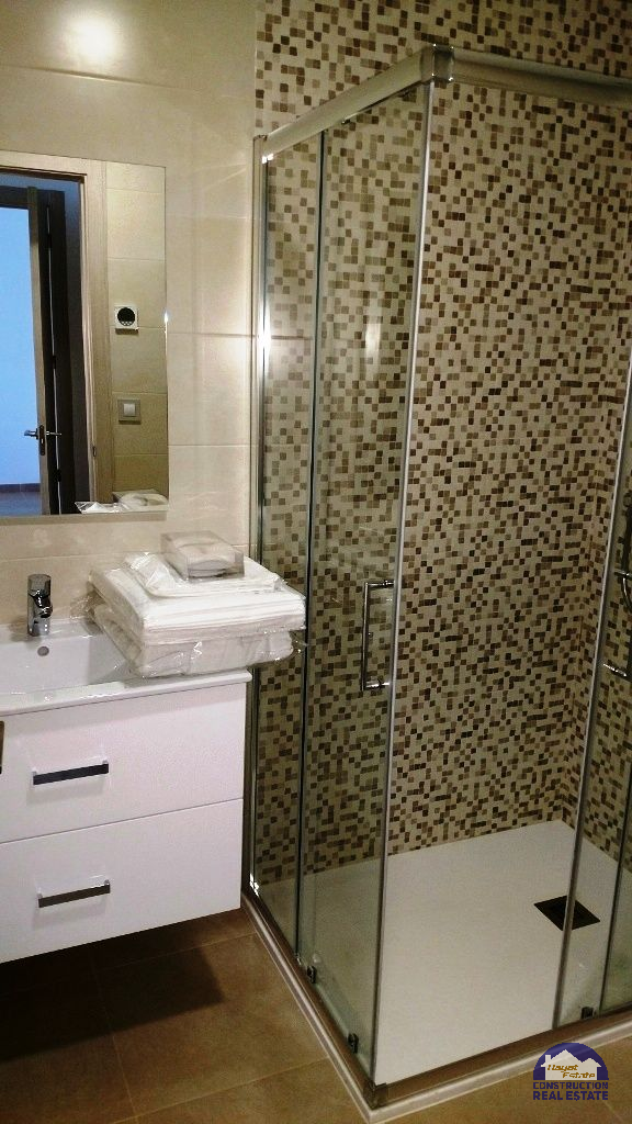 тумба под умывальную раковину в главной ванной комнате, умывальная раковина в дополнительной ванной комнате, обе ванные комнаты оснащены зеркалом и галогенным освещением