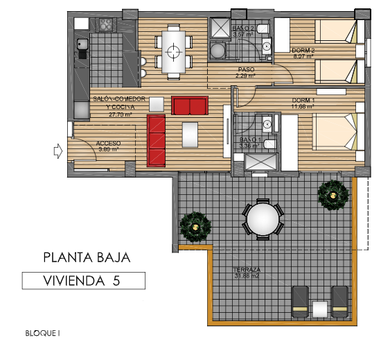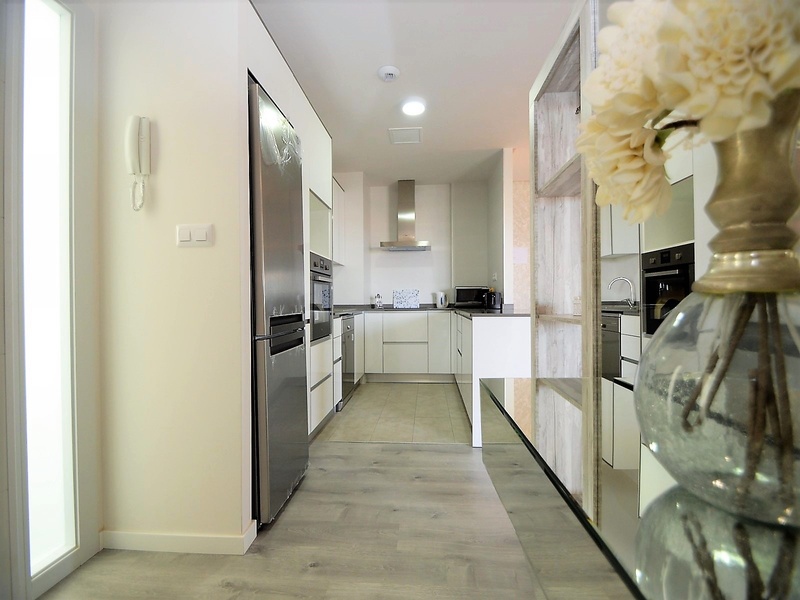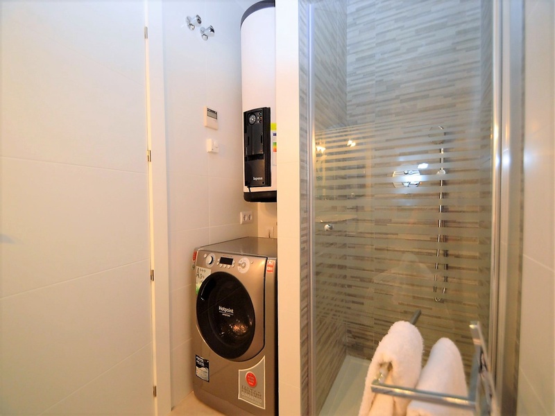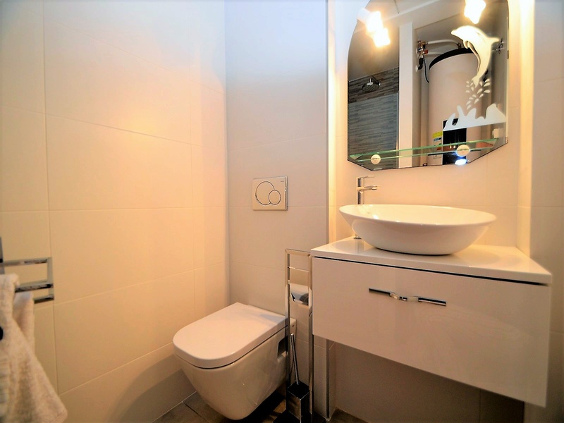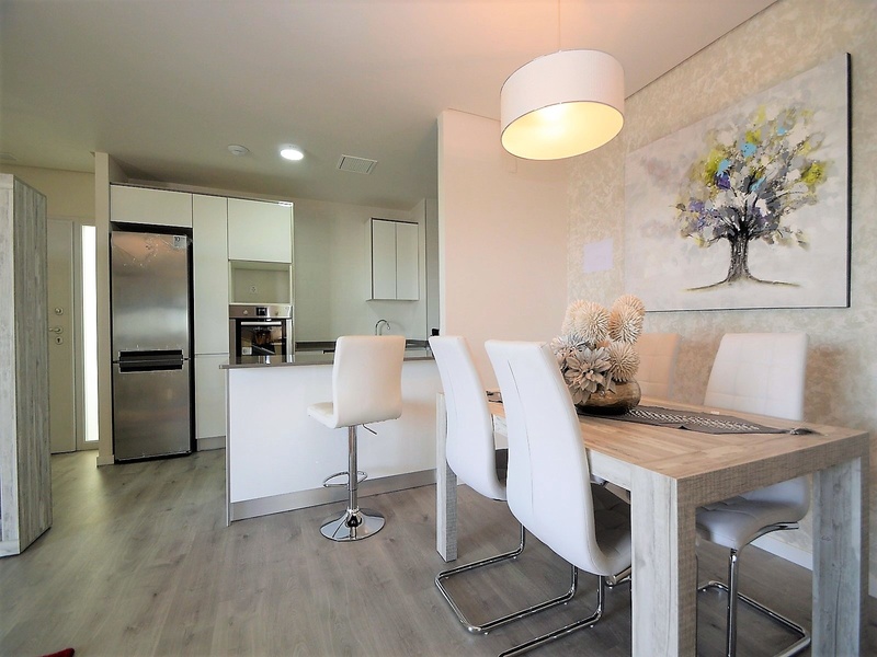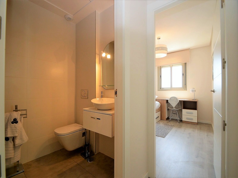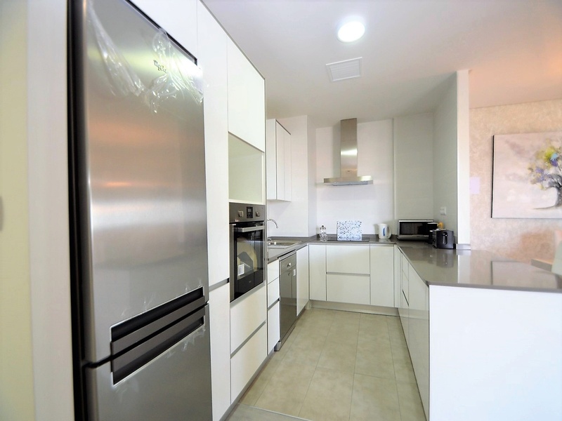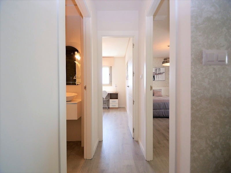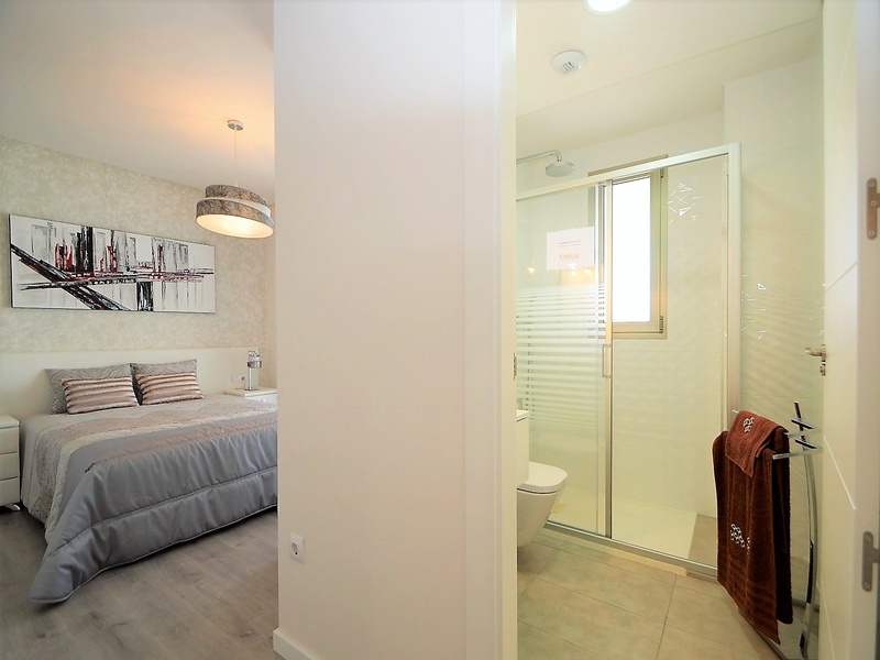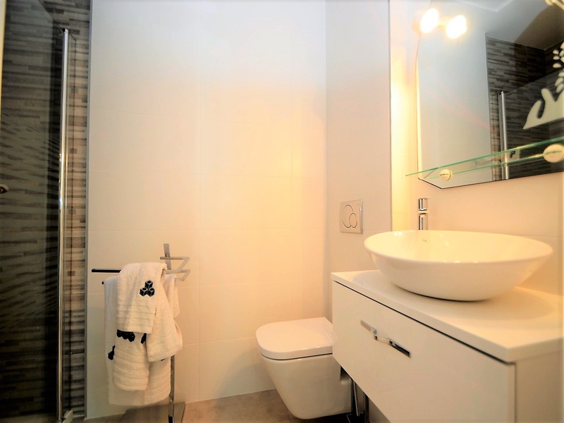 Ground floor apartment of new construction of a 5-floors building. The apartment consists of 2 bedrooms, 2 bathrooms, a living room with an american kitchen and a terrace of 47.34 square meters of a surface area. The apartments disposes of built-in wardrobes, fully furnished and equipped with white goods kitchen and bathrooms, telephone and television installations with optical fiber, heated floors in the bathrooms, heating, air conditioning and hot water with renewable energy, an armoured main entrance door, double glazing and aluminum shutters. The housing complex consists of 7 blocks and disposes of common gardens, children's playground area, swimming pools, an indoor spa, a gym and an underground parking. Is is located between La Zenia and Villa Martin. The best beaches of the area, the golf courses of Villa Martin, shopping centres, sports centres, schools, seaport, etc. are within less than 10-minutes driving distance.