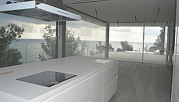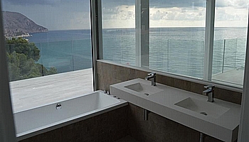 Роскошная вилла, полностью сделанная из стекла с видом на море. Площадь виллы составляет 425 кв. м., которая располагается на участке площадью 1172 кв. м. Имеет 5 комнат, 6 ванных, большую гостиную, полностью оборудованную кухню. Четыре этажа соединены между собой лифтом, гараж находится на верхнем этаже. Бесконечный бассейн с каскадом.