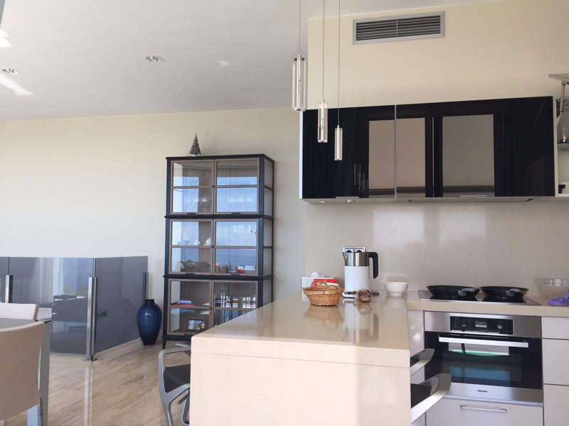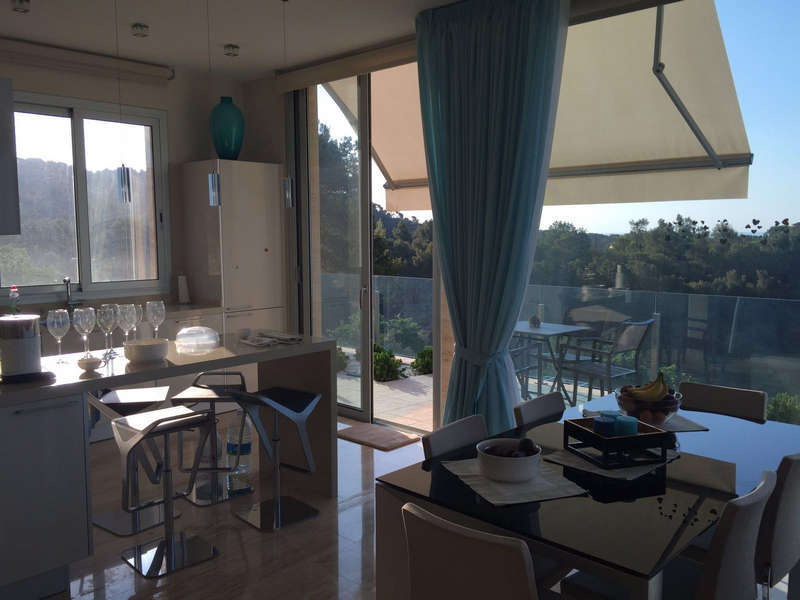 Меблированная гостиная со столовой и выходом на террасу с панорамными видами на море. Четыре просторные спальни, три ванные комнаты, полностью оборудованная и экипированная кухня.
