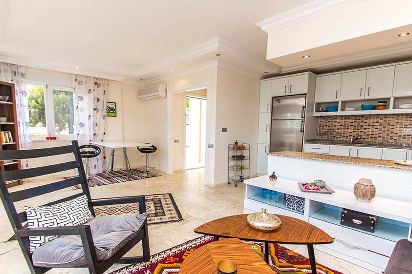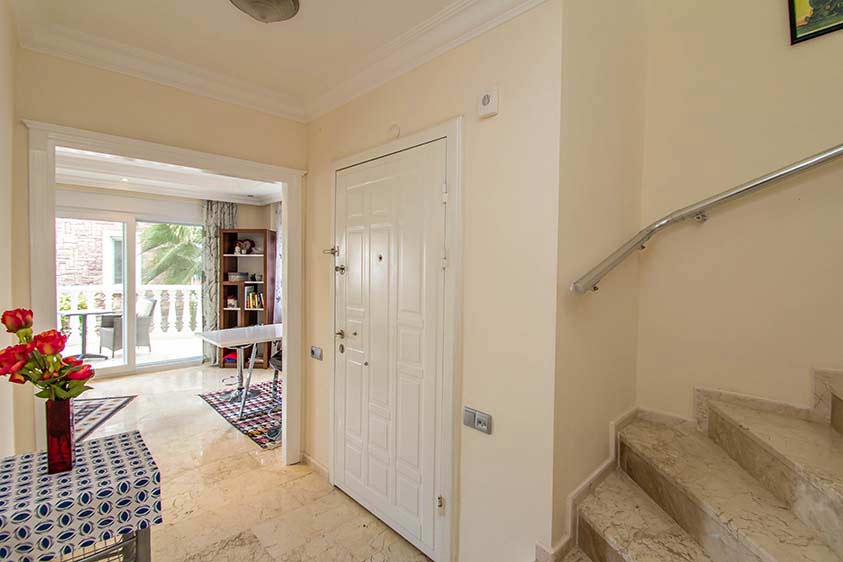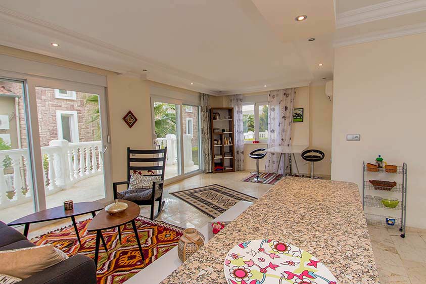 Агентство недвижимости Stay property предлагает Вашему вниманию трехкомнатную виллу, входящую в состоа комплекса из коттеджей, в тихом районе Тепе курортного города Алании на берегу Средиземного моря. Площадь составляет 125 кв.м. На вилле 2 спальни и 1 гостиная с американской кухней, а также сад. Продается вилла вместе с мебелью и бытовой техникой. Из панорамных окон открывается потрясающий вид на море, город Аланию и знаменитую Аланийскую крепость, а также на Таврские горы с их лесами. К инфраструктуре относятся сауна, бильярд, теннисный корт, открытый плавательный бассейн, парковка, круглосуточная охрана, консьерж.