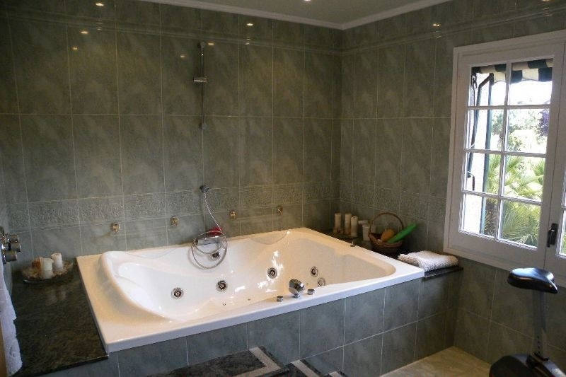 Просторная гостиная с камином и выходом в ухоженный средиземноморский сад и к бассейну 7х14, четыре супружеские спальни с ванными комнатами, оборудованная и полностью экипированная кухня, вспомогательный салон, кабинет.