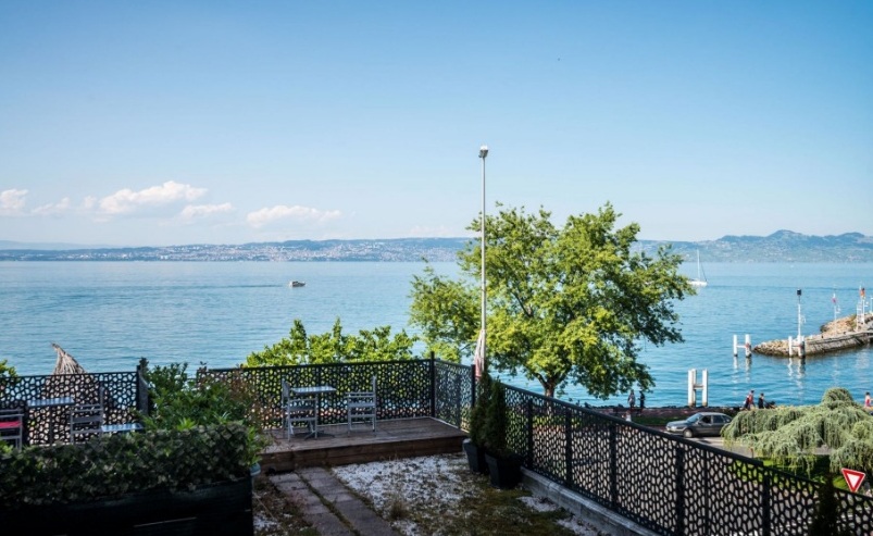 The apartment consists of an entrance hall, a large living room, a terrace overlooking Lake Geneva, a kitchen equipped with the most modern equipment, 2 bedrooms with bathrooms and verandas with a winter garden.