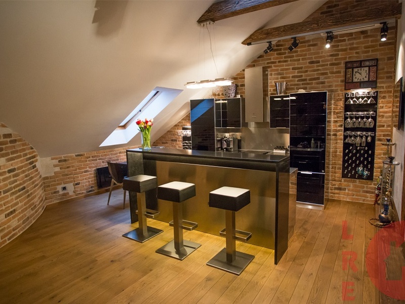 For sale duplex apartment area of 81 sqm, 5/5 floor, a unique building, built in 1905, in the heart of Riga's Old Town. Beautiful view of the historic city center and the roof of St. Peter's Church. Disposition: entrance hall, kitchen - dining room, living room, bedroom, attic, separate toilet from the bathroom. The apartment is fully furnished. Modern kitchen, bedroom, living room furniture. The apartment is equipped with built-in appliances (refrigerator, wine cooler, oven, dishwasher, washing machine, dryer). The apartment is equipped with modern engineering systems: the system of mass media, home theater system, intercom, alarm system, underfloor heating. Condition: repaired on individual design project Loft style. Facilities: car park, shops, cafes, restaurants, a sports club. The owner of the apartment reserved secure parking space. The apartment is ready for living. Hire purchase. Do not waste time searching for and repair. The apartment is ideal for obtaining a residence permit because of the cadastral value of 80.200 euros. Land Register. We will help you to get credit.