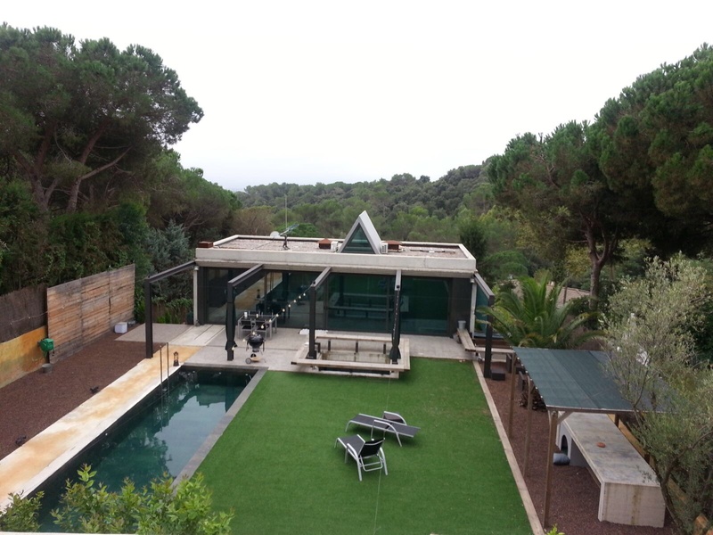 This house was created especially for modern design lovers. The house is located in one of the most charming urbanizations of the eastern valleys, in 20 minutes driving from Barcelona capital. In the courtyard, we find a modern and beautiful pool with salt water, there is a restroom near the pool so you don´t have to go inside the house having rest there. The property has a cellar, decorated by hand, a place for barbecue, equipment for automatic irrigation, parking for 2 cars and space for the guest house of 90 m2.