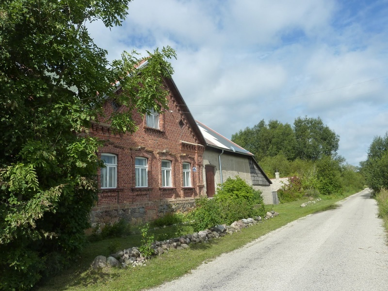 Old house with 2 storeys of red brick with barn in the village Kolkja on the bank of the Peipus lake from family possession, built around 1900 in the tradition of the Old Believers.