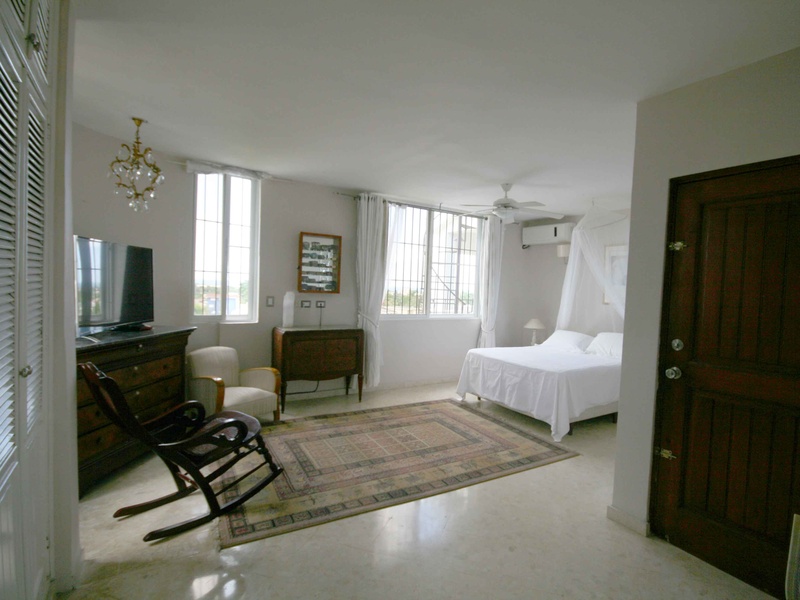 Walking up the grand staircase to the second level of this home you will find a library and access to a large private sundeck with expansive views of the city and the sea. Ocean breezes constantly caress you because you are located at the top of the hill. The master bedroom is located on this level and is large by western standards. There is a 5 piece ensuite bathroom including jacuzzi bath and bidet, as well as a skylight that bathes the room in natural light. This bathroom has been completely updated recently. There is enough closet space in the master bedroom to satisfy the needs of the largest wardrobe. Relax in your king size bed while looking out over the Caribbean Sea or simply relaxing and enjoying a cocktail while watching your favorite movie. There are two other bedrooms on this level with private ensuite baths and views of the sea.