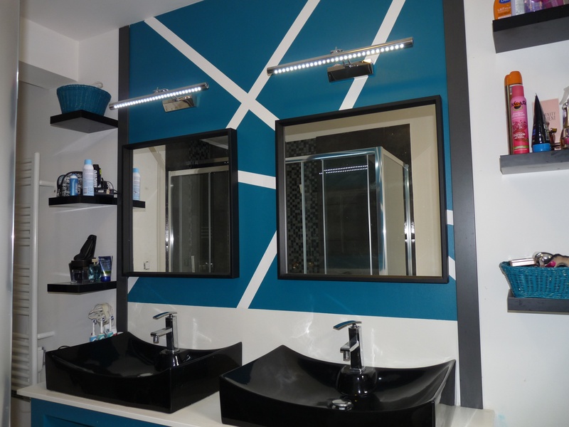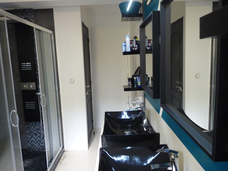 Bathroom with bathtub chromotherapy balneotherapy, Italian shower, double basque, double-flow CMV.