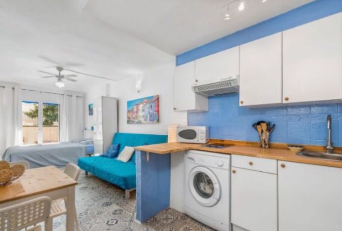One room apartment with large terrace in Illetes. The rent is 590 € / month + electricity. WiFi and water, air conditioning and heat pump are included in the price. Available free from 1 November 2017 to 31 March 2018 Bathroom with bathtub Garden and terrace in kitchen, open kitchen Floors: ceramic tile Condition: well maintained, renovated Equipment: furnished, as new