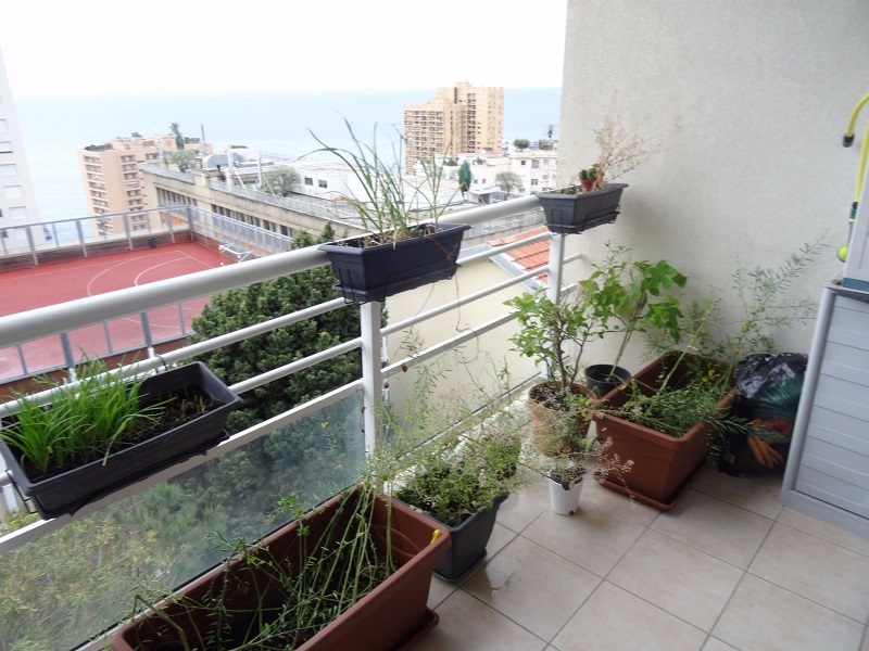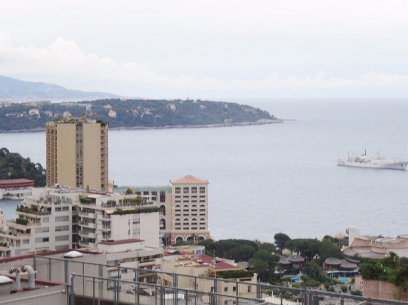 The living room and bedroom open onto a beautiful terrace with panoramic views on the Sea and on the Principality.