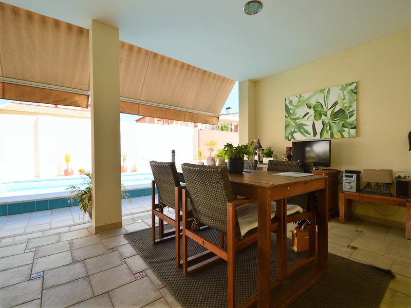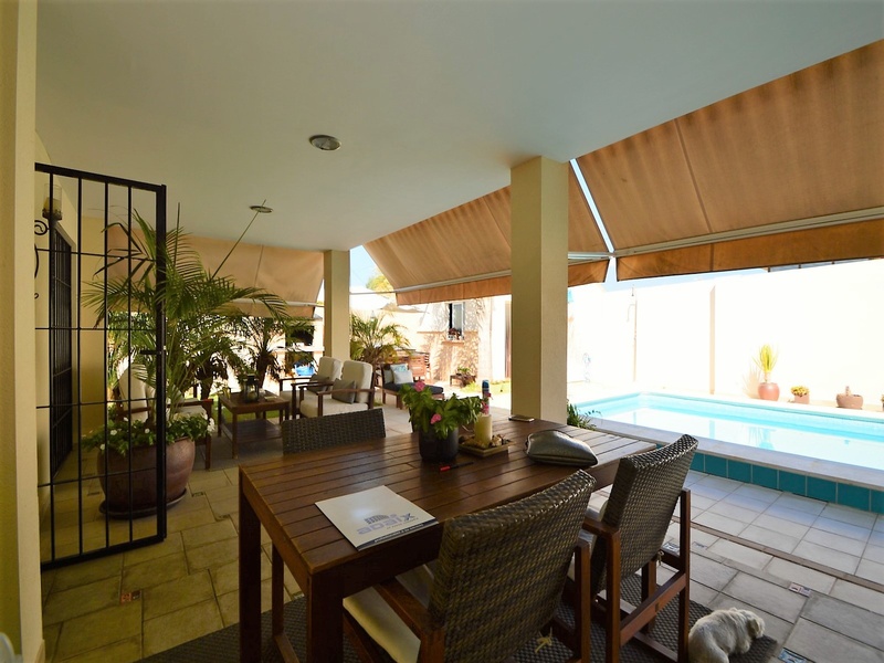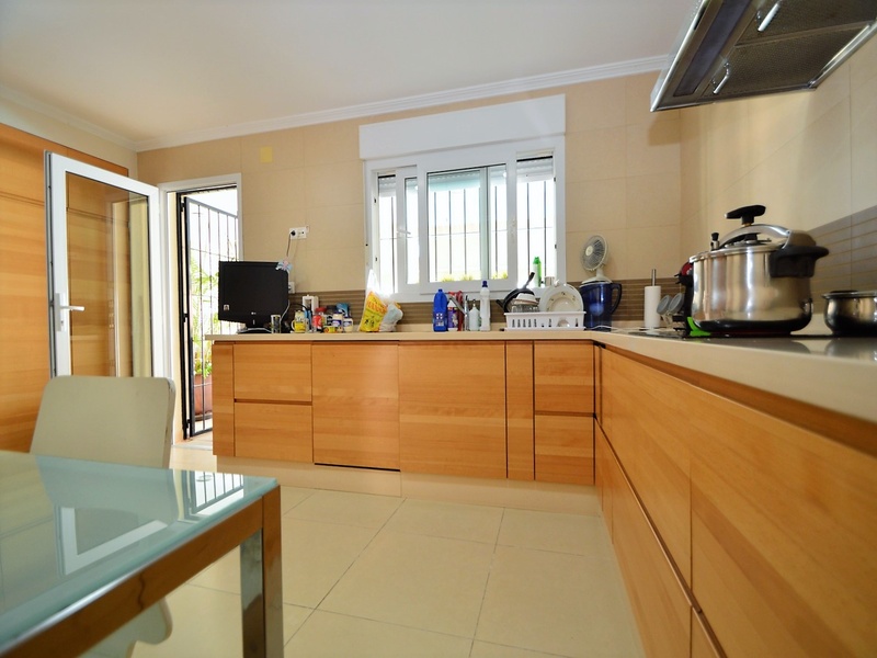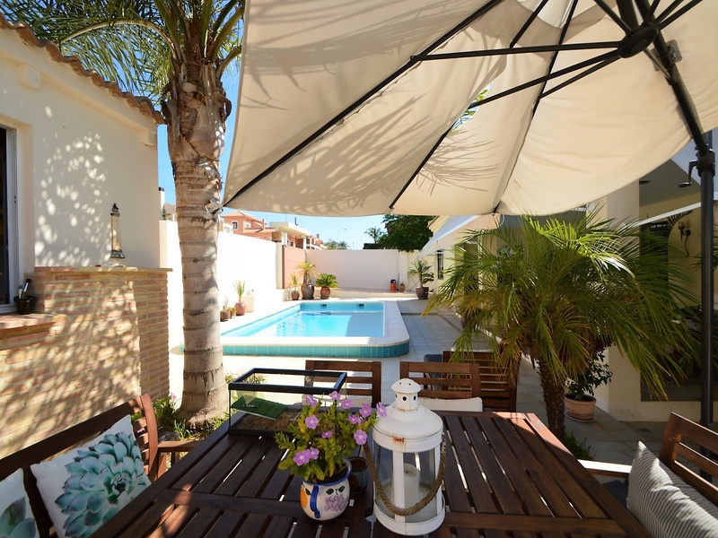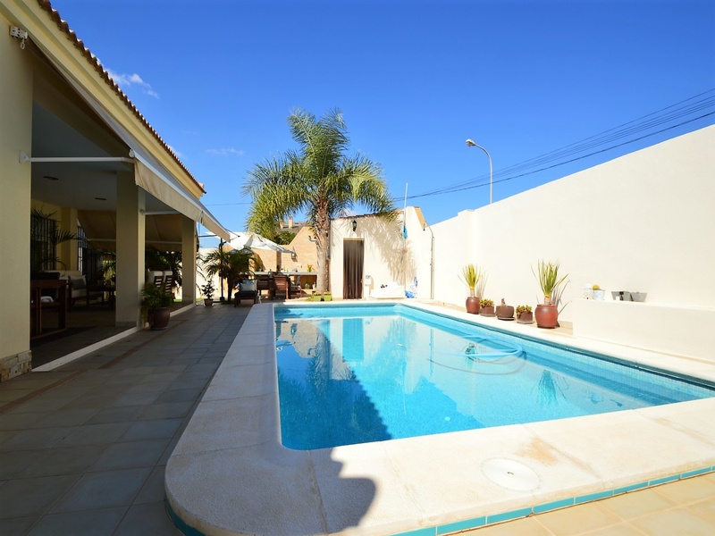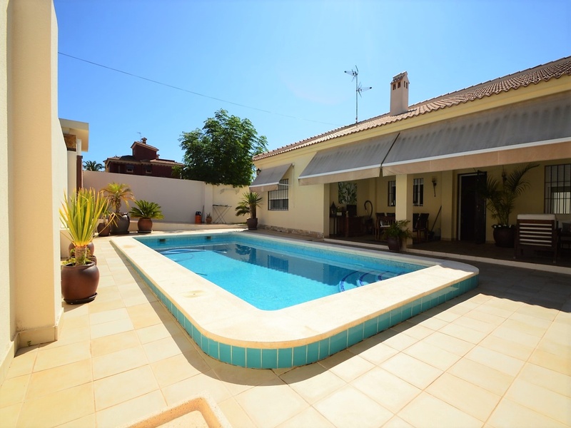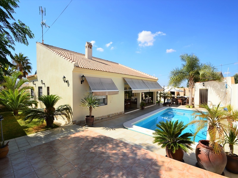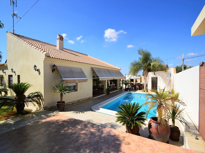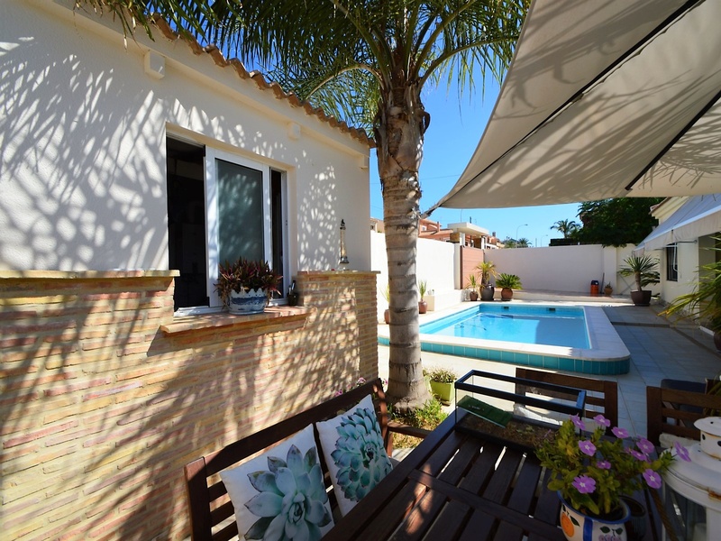 Villa for sale in Torrevieja, in the elite residential area of Aguas Nuevas. One-storey house with a large living room with a dining area, a spacious separate kitchen, three bedrooms and three bathrooms. The villa is located on a land plot of 428 square meters with a private swimming pool, barbecue area, Finnish sauna with toilet and shower, and several rest areas surrounded by a beautiful garden. The villa was built in 2009, it is in a perfect condition, fully furnished and equipped with home appliances, air conditioning, sliding double-glazed windows, high quality finishing materials and sanitary. Location in an elite residential area in the suburbs of Torrevieja, in close proximity to almost any services you may imagine. Several supermarkets and many shops, educational and sports centres and institutions, a hospital, offices of all types, etc. are in a 5-minute walk. The city centre, La Mata Beach, Los Locos Beach and the natural park Lagunas de La Mata and Torrevieja are in less than a 5-minute drive.