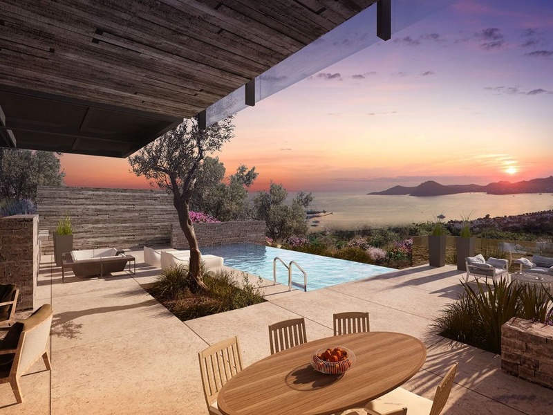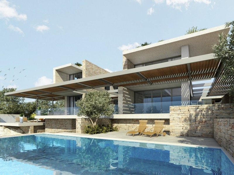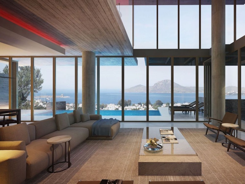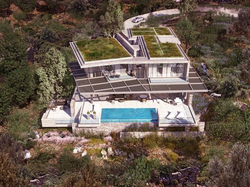 A luxurious project that was given the exclusive design award in Europe. The project has been constructed in a private bay of the Aegean sea. Every villa is located detached and has tremendous views towards the sea and islands. the 4 bedroom villa is built over two floors. The Smart House system is installed. There is a range of first-class restaurants and shops on the site.