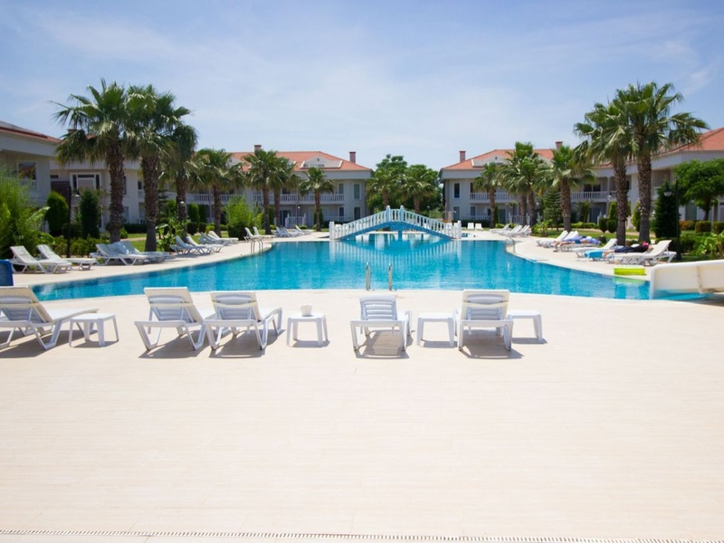 Villa in Belek at a bargain price! It is situated within a complex with hotel services: 2 big swimming pools, fitness centre, sauna, parking, tennis court, playground, aquapark. The complex has its own shuttle to the beach and centre of the city.