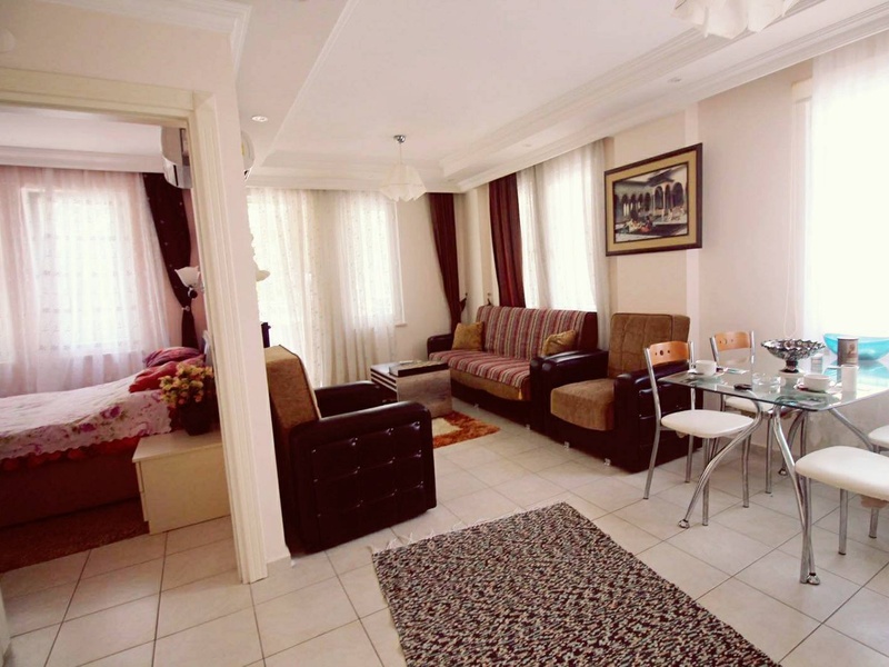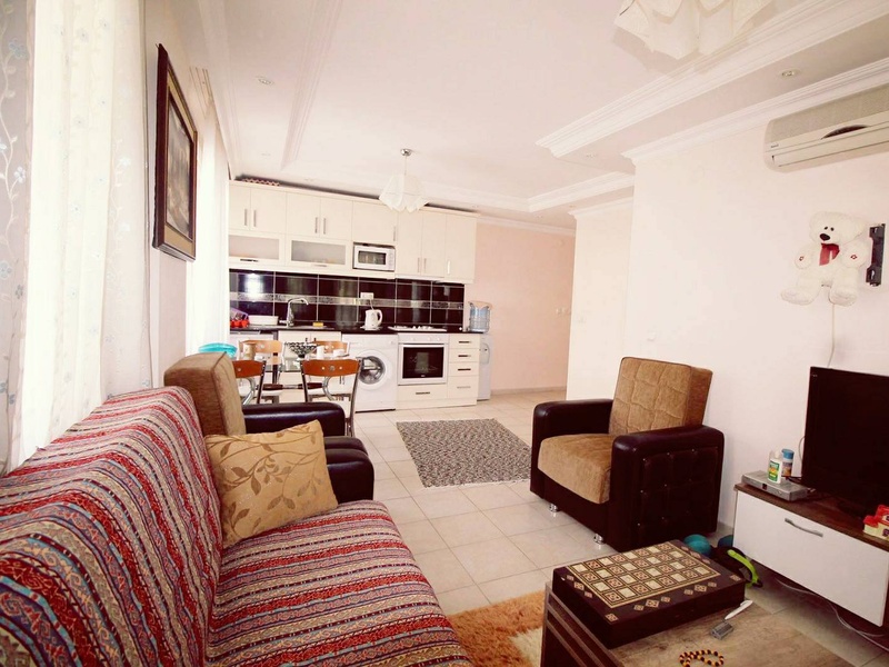 One bedroom apartment in the center of Alanya. Close to all the city facilities and the beach. The apartment has a good plumbing, shower, steel entrance door, kitchen furniture. Sold with furniture. On the territory there is a swimming pool.