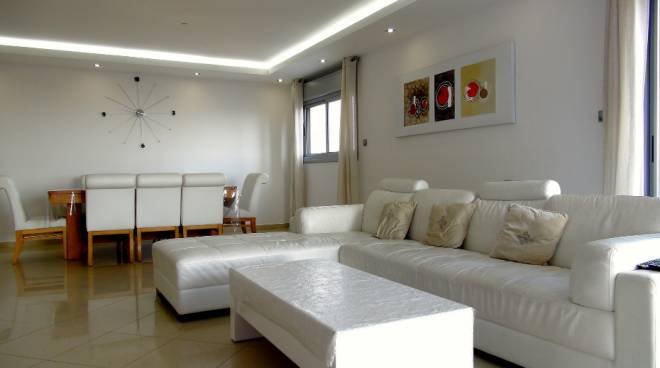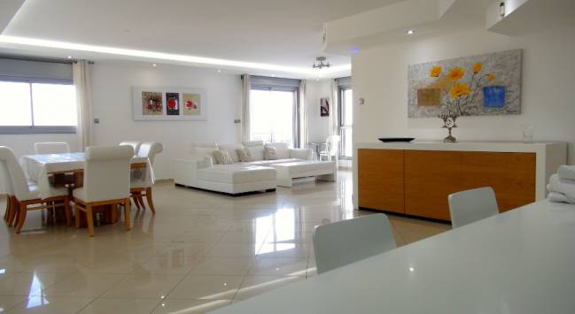 For rent 4-room apartment in Ashdod, the sixth largest city in Israel, located in the Southern District of the country on the Mediterranean coast, thirty kilometers south of Tel Aviv. In the very luxurious residence of Costa del Sol, in the Yod Zain area, a very beautiful apartment of 170m2, on the 5th floor there are 2 elevators. The apartment consists of a spacious living room, dining room, terrace overlooking the sea and pool, 3 bedrooms with sea views. Equipped kitchen without dishwasher, oven, hob. Laundry room with washing machine. 2 bathrooms and a 3rd toilet. Central air conditioning. Satellite TV, Internet WIFI. Suitable for a family of 6 people who respect other people's goods. The spa and swimming pool are not allowed for short-term tenants. Price list: Low season: 1250 euros per week + 200 euros for an extra night. Pessos: an additional 200 euros. July and August: 5,000 euros per month or 1,500 euros per week + 250 euros for an extra night + Electricity + 70 euros for cleaning. Contact us for more information.