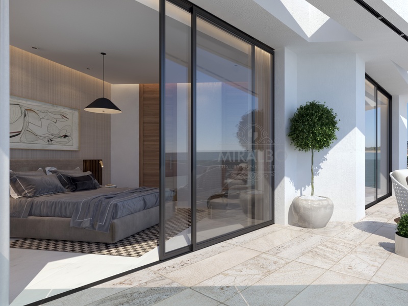 The entrance to this two level villa with double high is located on the first floor. Here you will find a spacious and bright living and dining room with an integrated fully equipped kitchen. On this level there also are two comfortable bedrooms with integrated wardrobes and a bathroom. On the second floor we have a master bedroom with a bathroom in suite and access to a private terrace.