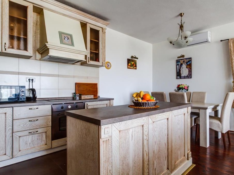 Дом располагает 3 спальнями с собственными ванными комнатами и четвертой спальней для детей. Из окон и с террас дома открывается фантастический вид на море и село Загора. Гостиная, кухня и столовая очень просторные. Перед домом расположена просторная терраса с бассейном и зоной барбекю, а также сад и парковка.