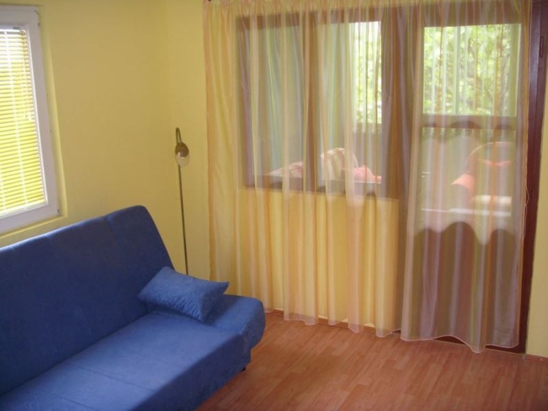 Гостевая квартира расположена на первом этаже дома и состоит из комнаты, ванной комнаты и террасы.