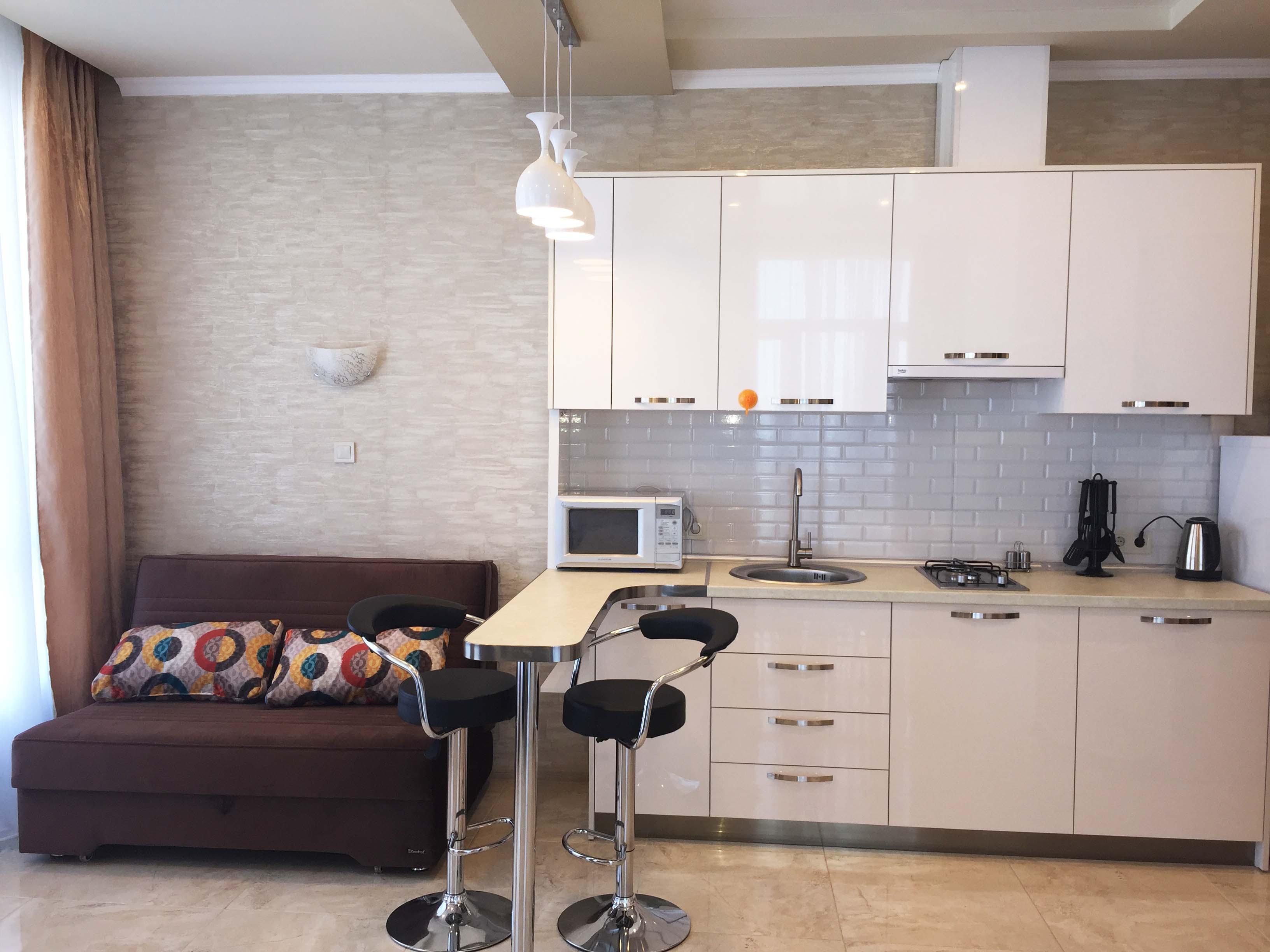 The apartment consists of a studio-hall, a bedroom, a bathroom and a corridor. Equipped with all necessary furniture and appliances, wi-fi, counters. Monthly maintenance fee 30 GEL (12 USD)