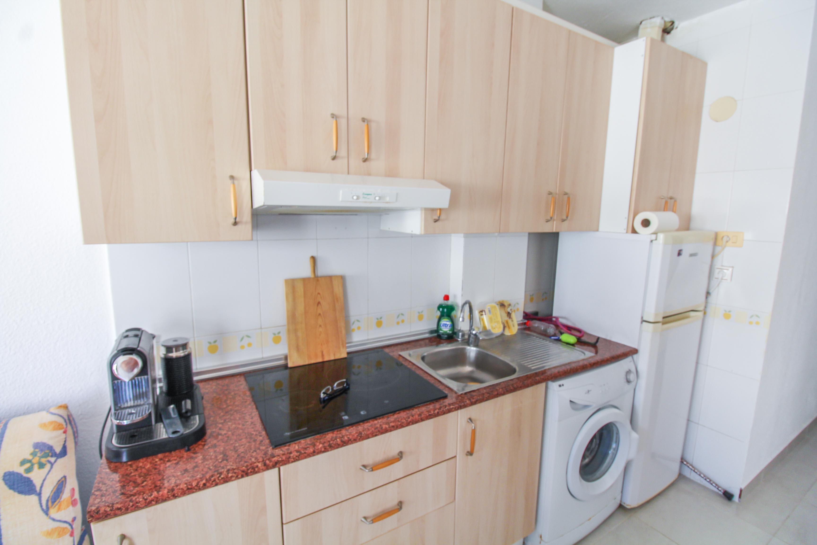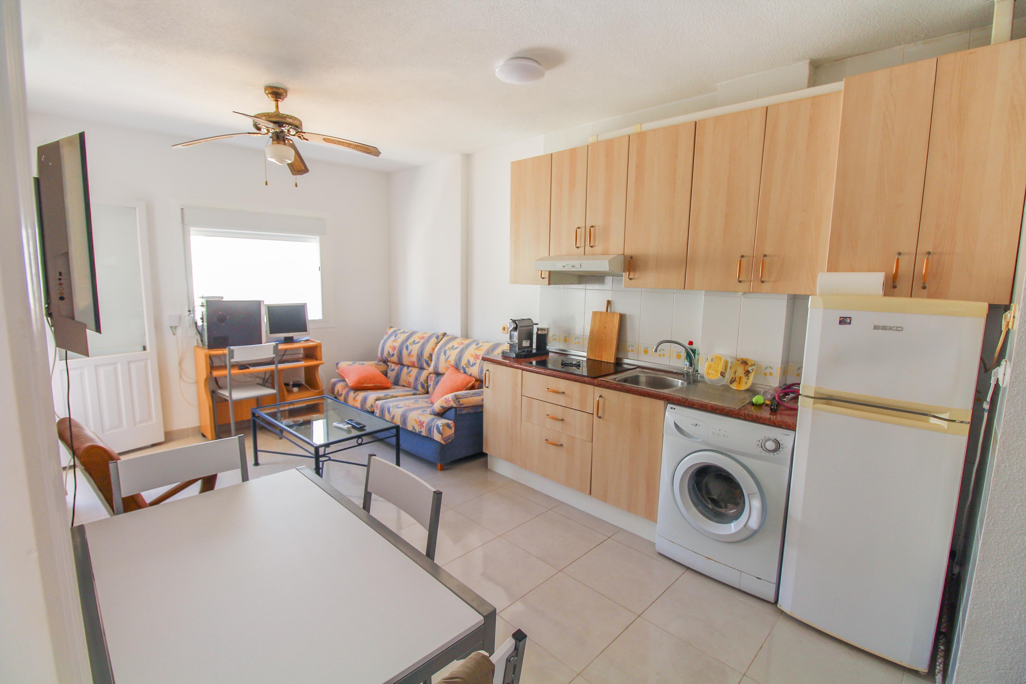 Жилая площадь квартиры 45м². Комфортная планировка: полностью оборудованная кухня американского типа со всей необходимой бытовой техникой (стиральная машинка, керамическая варочная поверхность, холодильник, вытяжка), салон с обеденной зоной с выходом на террасу, отдельная спальня комната, ванная комната с душевой кабиной. Квартира в очень хорошем жилом состоянии.