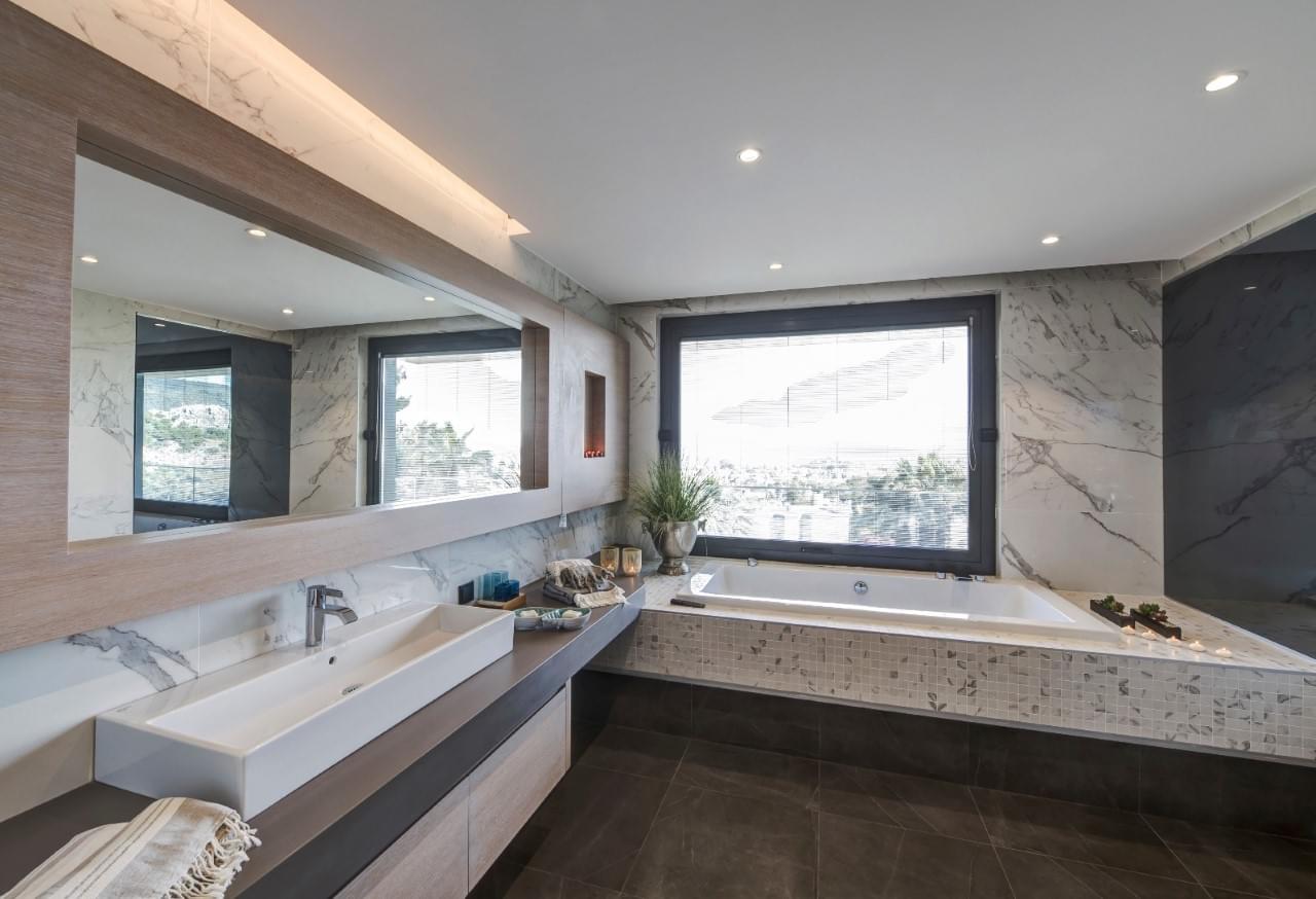 Villa in a perfect location. 813 sqm - 7 bedrooms - 6 bathrooms - kitchen - smart home system - lift - underfloor heating - security cams - parking space for 6 cars - large private spa area - private garden - private pool - air conditions.... Location: only 1.000 m far from the heart of Bodrum - 1.400 m far from the sea and the yacht habour - 500 m from the next hospital - a lot of shops and restaurants are nearby. Sea view - castle view - Bodrum view....