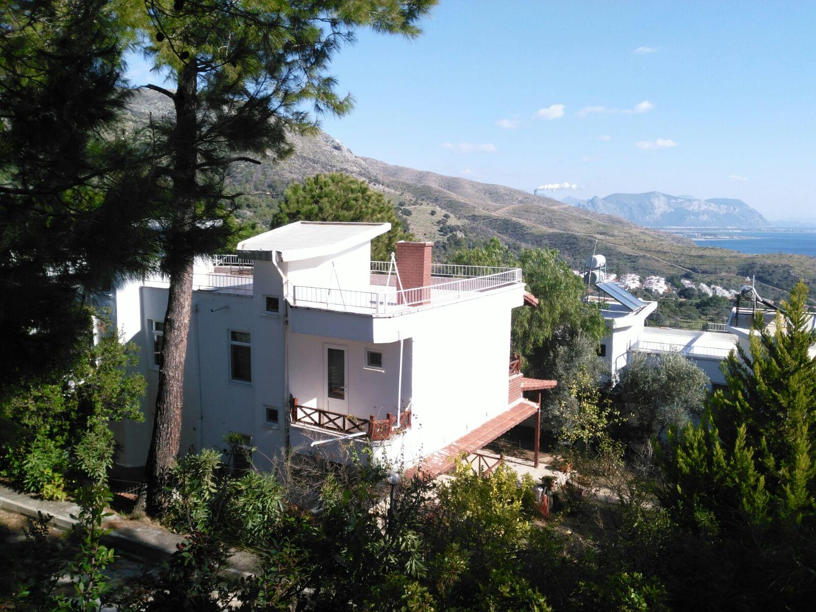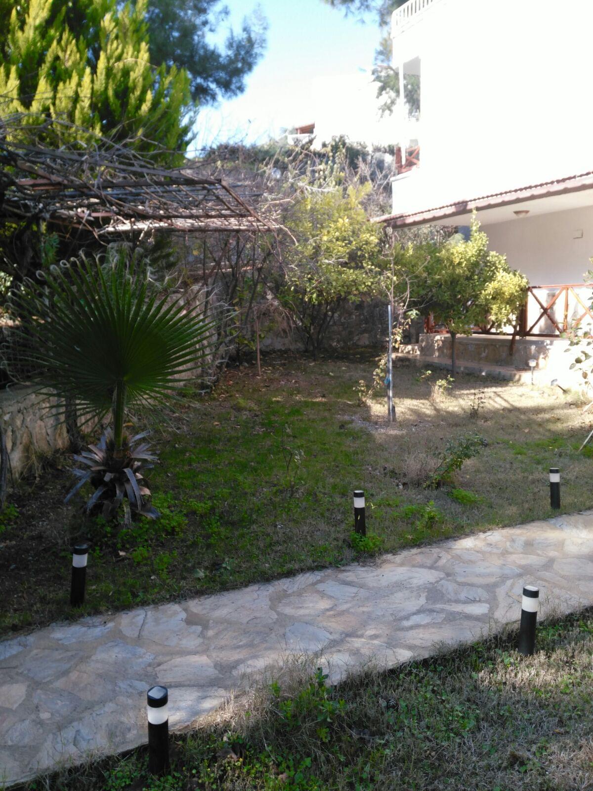 House is a well maintained. all house is surrounded by sheds. All wet floors are made of 1st class material. Top quality material are balloon cover kitchenware. The bathroom has everything from a walk-in shower cabin to the radio. It is a corner villa with a 200 m2 garden. 200-250 meters from the sea. the site has its own private umbrellas and sun loungers. 2 olives in the garden, 2 lemons, pomegranate, mulberry, vine, 2 palm, orange etc. There are trees. The garden has its own underground garage. All rooms has seaview.