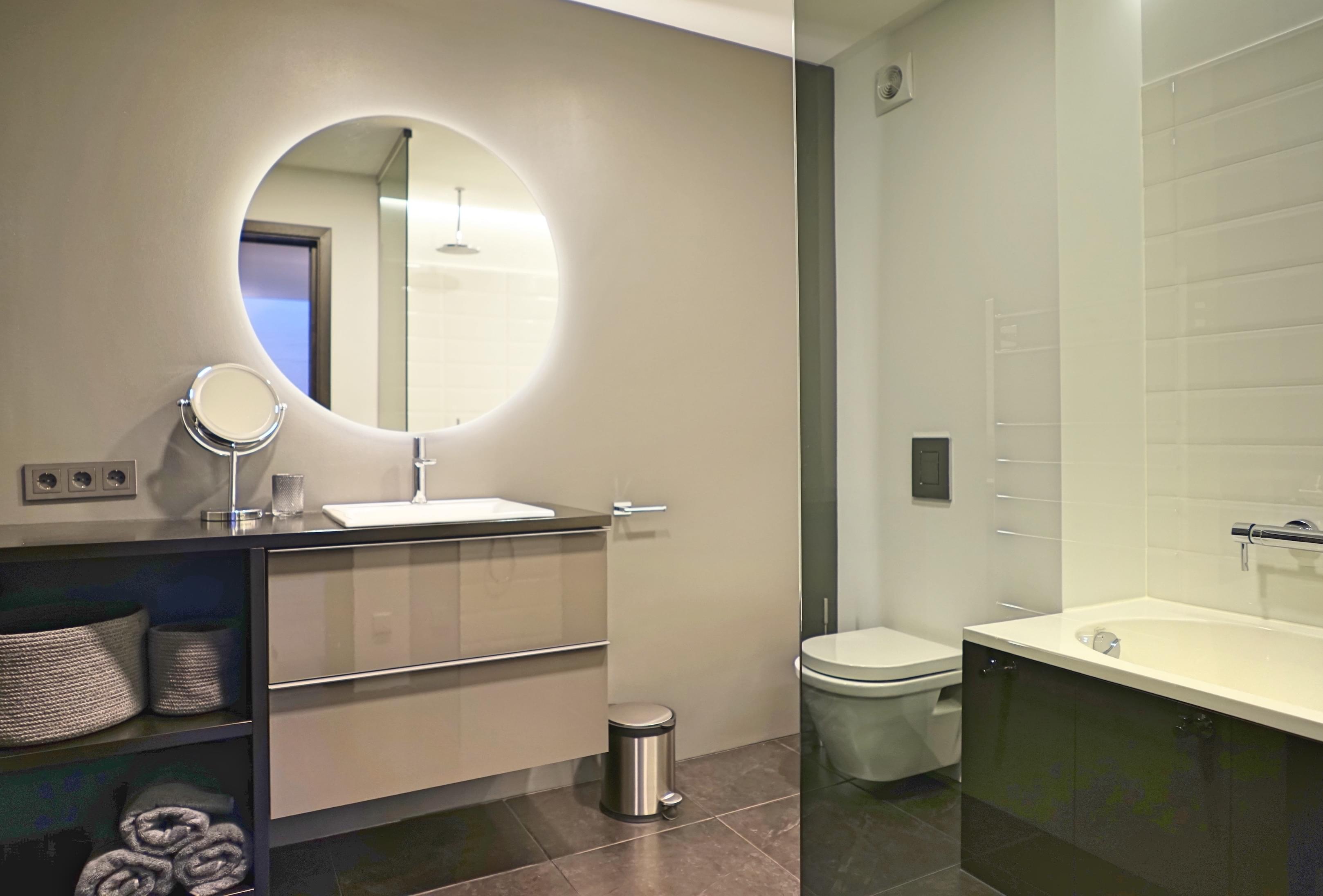 Exclusive 3-level apartment which has got its own pages in the biggest local interior design magazine “DEKO”. Fully furnished 4-room apartment with original interior design. Fully equipped with high-class energy-efficient household appliances. Kitchen with dishwasher, washing machine in separate utility room, 2 TV sets with audio systems, projector. Energy-efficient LED lights used only. There is a spacious balcony with a nice sunset view over the rooftops of the capital city. Free parking place right next to the house or paid parking in the backyard. The building has its own heating system with individual heating meters for each apartment, video surveillance, two elevators, live guard (24/7), its own beauty salon downstairs and many other services available on the first floor of the building. Thanks to energy-efficient solutions in apartment, the total utility bills will be only around 100 EUR in summer time and 200 EUR in winter time.
