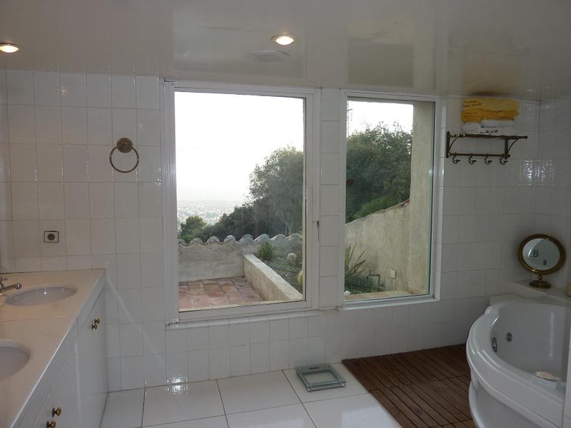 Villa 6 rooms of 400m² on 3 levels: Living/dining room with TV(Internet), DVD, HI-FI, piano. Equipped kitchen. Guest toilet. In the floor: Master bedroom with 1 double bed (180), Dressing, terrace sea view, bathroom, separated toilet. At the lower level: 1 bedroom with 1 double bed (160), TV, safe. 1 bedroom with 1 double bed (140), TV, exit terrace. Bathroom/WC. 2 communicating bedrooms with each 1 double bed (140), exit terrace. Bathroom/WC. Sauna. Fitness room.