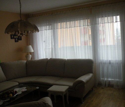 В квартире имеются встроенные шкафы, новый кухонный бокс со всеми электроприборами, новые пластиковые окна. Месячные коммунальные платежи составляют 196 евро + электричество.