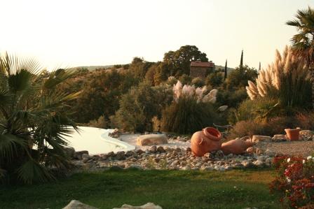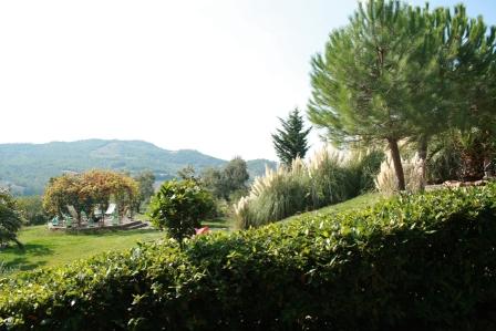 In 200 m Entfernung vom Haupthaus, 70 m² auf drei Ebenen, 2 Schlafzimmer, 1 Wohnküche (Kastanienholz, maßgefertigte Schreinerküche) mit großem offenen Kamin, Badezimmer mit Duschgrotte, alle Böden und Bäder in Marmor Bianco di Carrara; 500 m² Basaltschiefer-Terrasse um das Haus. Hinter dem Haus 300 m² Fischteich.