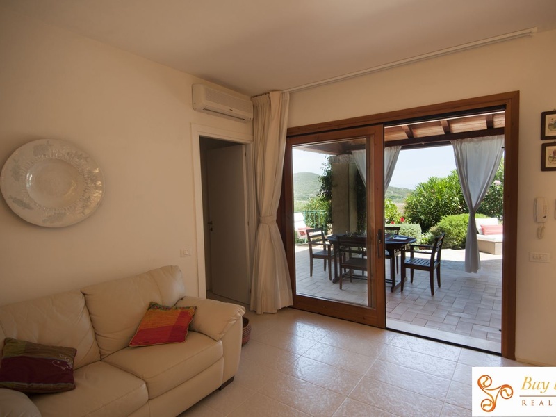 Sleeps 4/5. 2 bedroom, beautifully designed villa with private veranda and private enchanting garden, outstanding hilltop location with great view of the Chia Laguna and surrounding mountain. 800 meters from the beach and 500 meters from the Chia Village Resort. Services from the Resort are available for the guests of the villa (golf course, private sandy beaches, SPA, bank services, different types of restaurants, evening and night shows). In the village of Chia and nearby Pula there are supermarkets, useful shops, restaurants and banks in nearby Pula. Nearest beach is 3 minutes drive from the property. Fully air-conditioned. Short drive from the prestigious Italian Open Is Molas Golf Club 27 holes. 9km from the lively town of Pula. 30 min from the center of Cagliari with its great shopping and lively nightlife, just 40 minutes away from Cagliari Airport, where Easy Jet, Ryan air and BA fly. The area surrounding Chia is considered to be one of the most beautiful and wild of Sardinia, with its stunning cliffs and sandy white beaches.