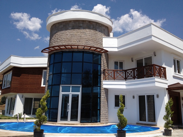 Internal and external decoration of the house is made of non-precious materials. PVC windows are equipped with automatic rollstavnyami, central air conditioning (cooling / heating), water filters, floor covering made of marble and granite. The external materials of the house provide sound insulation and keep the temperature inside the house (cool in summer, in winter - heat).