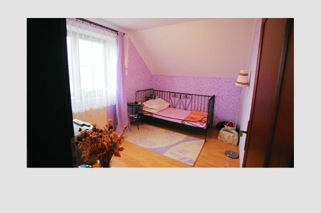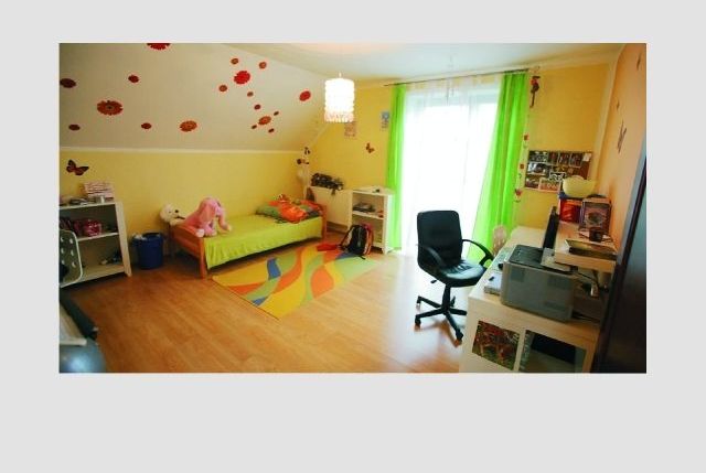На первом этаже находится холл, детская комната, ванная гостиная с камином и выходом на террасу, полностью оборудованная кухня. На втором этаже расположены 3 спальни, гардеробная и ванная комната с туалетом. Просторные, светлые комнаты. Большой, благоустроенный палисадник с беседкой.