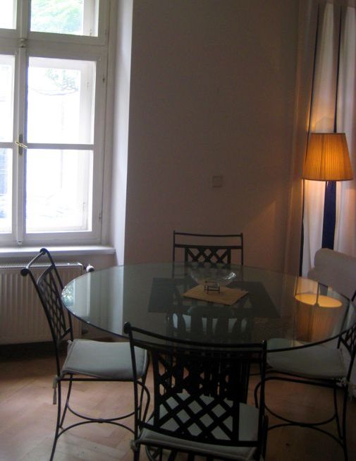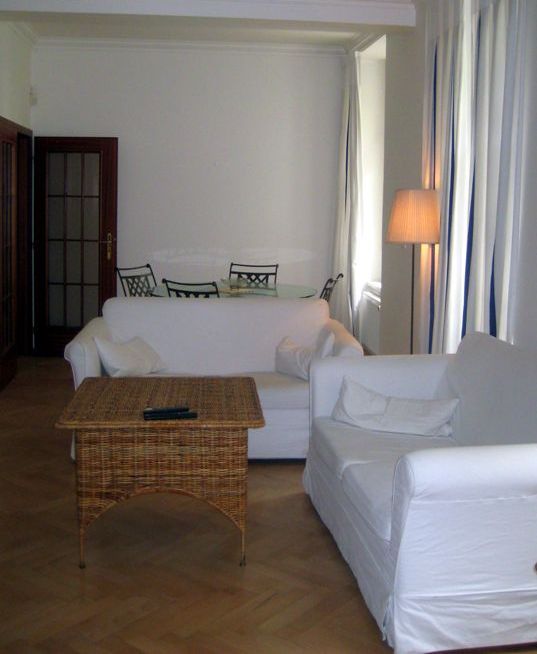 Полностью оборудованный кухонный бокс, гостиная, 2 спальни, ванная комната, туалет. На полу – паркет. Высокие потолки.