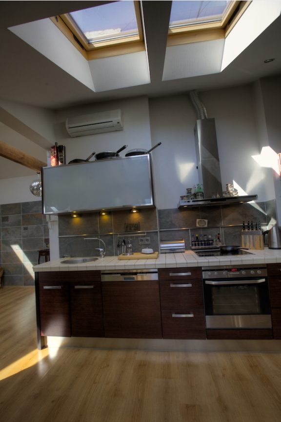 Газовое отопление, полы с подогревом. Из квартиры есть выход на террасу с видом на центр города и башни Старого города.