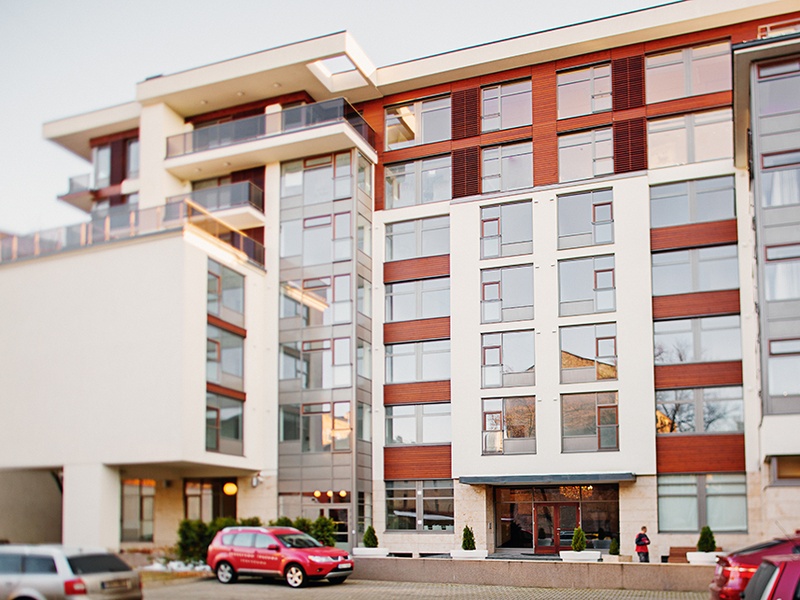 В 7-этажном доме установлены два лифта фирмы Otis с роскошной внутренней отделкой. Для нужд жильцов предусмотрены помещения для колясок и велосипедов. Фасад здания декорирован мрамором. Просторный и роскошный вестибиль с местами для отдыха, интерьер лестничной клетки был разработан в дизайнерском салоне. Пандус въезда обогревается, чтобы предотвратить образование льда в зимний период. На автостоянке предусмотрено обеспечить комфортабельную температуру примерно +10º автоматическим включением вентиляторов, обеспечивающих подачу теплого воздуха, что будет экономическим решением одновременно. Видеодомофоны перед входом в здание и перед входными дверьми в квартиры.
