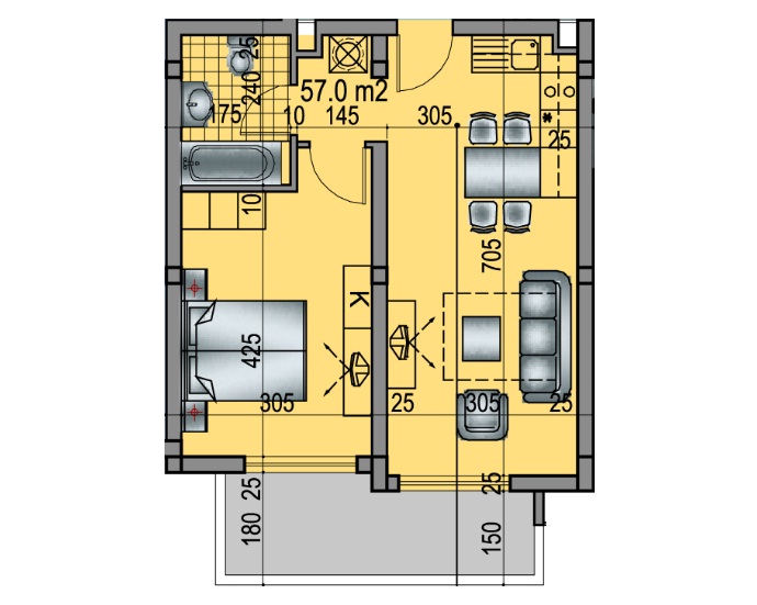 It consists of a kitchen area, sitting areas, 1-bedroom, balcony, bathroom with toilet. The property will be sold fully furnished.