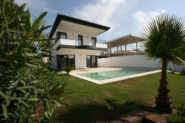 Есть бассейн, теплый пол, сделан ремонт, установлен кондиционер, дом расположен близко к пляжу и ценру города!