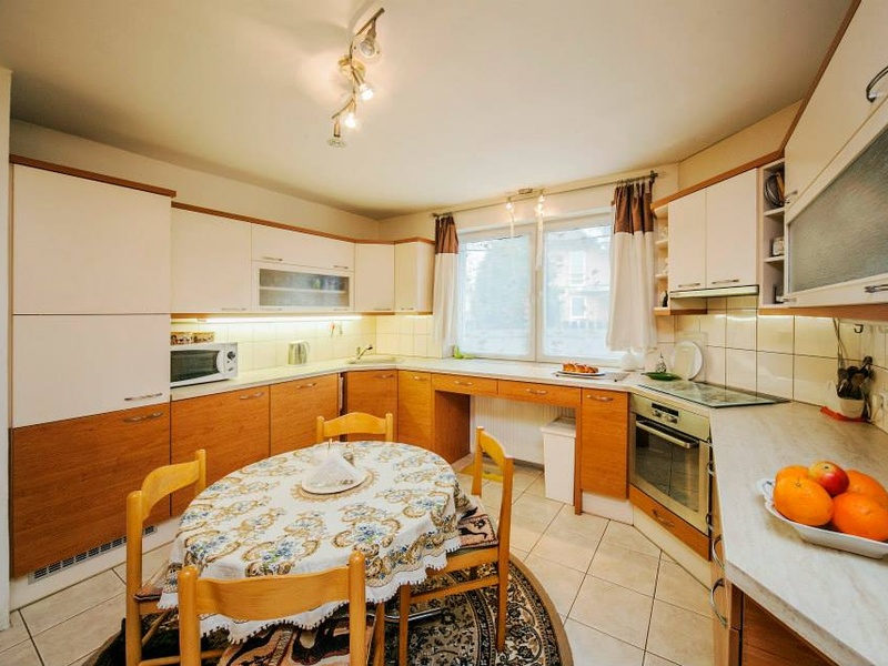 Предлагаем на продажу эксклюзивный великолепный дом 7+1 в новой вилловой части Говорчовице, район Прага-Восток, который располагает достаточным количеством места для большой дружной семьи. Из просторной гостиной сквозь большое французское окно Вы попадете в зеленый солнечный сад. Там построен отличный крытый бассейн и садовый домик с уютным местом для гриля и отдыха с друзьями и семьей. Участок прямоугольной формы размером 28х35 метров расположен по направлению на юго-восток. Застроенная площадь 177 м2 (18% общей площади участка) от общей площади участка 982 м2. Жилая площадь 164 м2: 1-й этаж 74 м2, 2-й этаж 91 м2. Используемая площадь 256 м2: 1-й этаж 125 м2, 2-й этаж 131 м2. Отопление состоит из тепловодной двойной трубчатой системы из пластикового материала, проведено как в радиаторы так и к частично отапливаемым полам в ванных комнатах. Отопительный объект — электрический накопительный бак с проточным отоплением TUV. Альтернативным теплогенератором является камин в гостиной с распределением теплого воздуха прямо до помещения под крышей дома. Нагрев воды газом. Также к дому подведена канализация, городской водопровод, готовый колодец глубиной около 30 м. Белые пластиковые окна. На крыше бетонная римская черепица. До пражской станции метро Летняны 10 минут на автомобиле.
