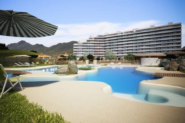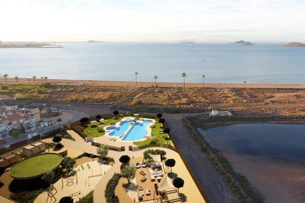 Роскошный жилой комплекс расположен на косе между двух морей: Средиземным и Mar Menor. Квартиры построены по очень высоким стандартам, имеют много дополнительных деталей. Просторная гостиная-столовая, в кухне установлена современная мебель с гранитной столешницей и бытовая техника. В роскошных ваннах установлена сантехника марки Roca, гидромассажные ванны. Стены в ванных комнатах отделаны мрамором, на полу – керамическая плитка. В спальнях сделаны встроенные шкафы из вишневого дерева. Все подготовлено для установки кондиционера. Есть просторные солнечные террасы, откуда открываются незабываемые виды на море. В окнах установлены специальные стекла с голубой отражающей поверхностью. Некоторые квартиры продаются с местом в паркинге. В жилом комплексе есть бассейн. Mar Menor – единственное внутреннее море, вода в котором обычно теплее на 5 градусов, чем в Средиземном.