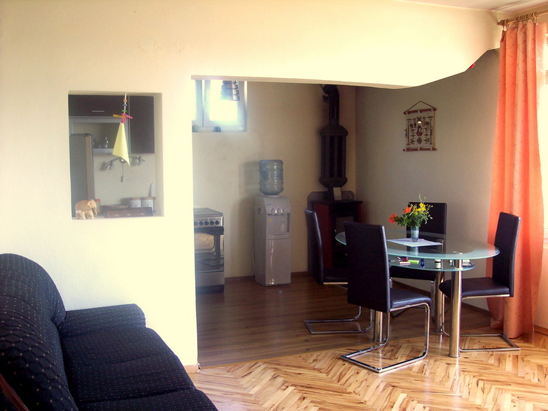 На втором этаже отдельная квартира 120 м2 - 4 спальни, просторная гостиная с кухней, ванная.