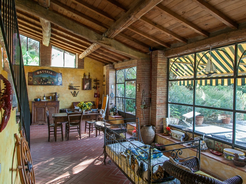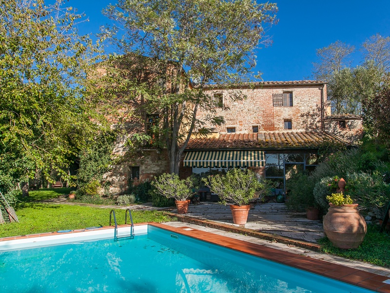 Durch eine umsichtige Restaurierung wurden die ursprünglichen Charakteristiken des Gebaudes, wie alte Terracotta-Boden und Decken mit Eichenbalken erhalten. Die Nutzflache von ca. 330 qm auf drei Ebenen beinhaltet im Erdgeschoss (EG) eine Kleine Wohnung mit separatem Eingang, Schlafraum, Essplatz Kochecke und Bad. Der Haupteingang im EG fuhrt durch die Garderobe mit WC in eine kleine Halle, einen grossen Eessraum mit Kamin und die anschliessende Kuche. Im Obergeschoss liet ein zentraler Wohnraum mit Kamin, zwei Studios scrivie drei Schlafzimmer mit zwei Badern. Im Untergeschoss befindet sich der verglaste Wintergarten mit Offnur, yur Terrasse mit Schwimmbad sowie ein weiterer Raum mit Durchgang zur Pergola. Ein Naturkeller im Tuffstein, eine Wische_ und Vorratskammer, die Werkstatt und ein Kleines lager runden das Ug ab.