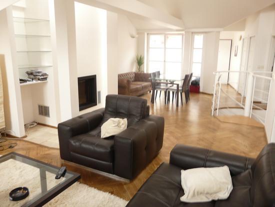 В квартире имеется холл со встроенными шкафами, 2 спальни, гостиная с выходом на террасу и камином, полностью оборудованная кухня, ванная комната, 2 туалета. Большие, светлые комнаты. На полу – паркет из дуба. Дом прошел полную реконструкцию. Лифт. ...