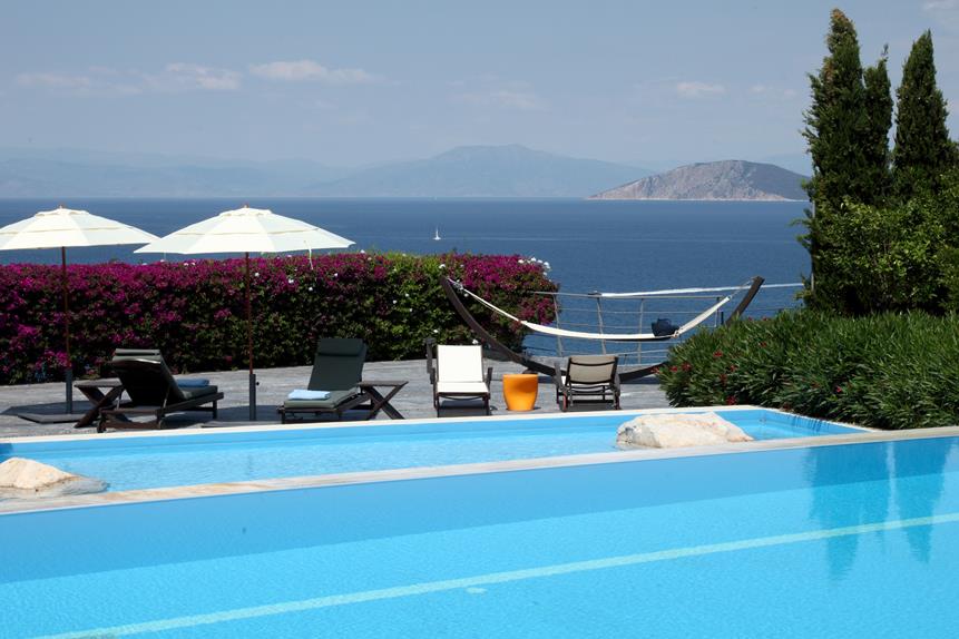 Price: 3.600 euro per day This modern new villa is located in the broader area of Porto Heli situated literally above a beautiful beach. It features magnificent sea and forest views at the same time, an amazing infinity swimming pool with shaded su...