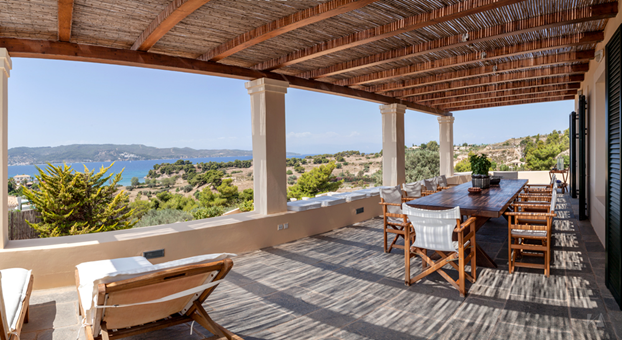 The villa is located on a hill in the area of Costa, just 500m from the beach, offering unobstructed view to the island of Spetses. The house, spread over two levels, overlooks the peninsula of Costa in front of it and the view from all rooms is magn...