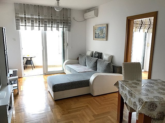This wonderful apartment is located in the central part of Sutomore on the finest street Tsar Lazar just in 300m from the sea. There is also a parking space next to the building. The property is 39 m2 (including the balcony 7 m2) situated on the thi...