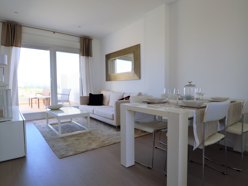 Brand new 2 bedrooms apartment for sale on the first line of the golf courses Las Terrazas de La Torre. With a total built surface area of 85,80 square meters which includes a terrace of 18,10 square meters. The apartment disposes of 2 bedrooms, 1 ba...